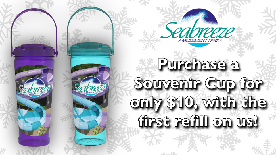 Give the gift of Summer this Holiday Season! Buy your Tickets or Passports online and purchase a Souvenir Cup for only $10, with the first refill on us! *Cups can be picked up at the Seabreeze office starting December 15th.